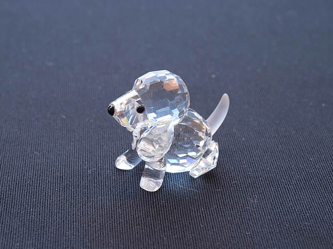 スワロフスキーのビークル犬のクリスタルフィギュリン。W4×D2.3×H2.8cmととても小さいですが繊細な加工が施されています。愛らしい表情も魅力です。箱・栞も揃った大変状態の良いお品物でした。