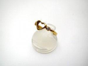 ティファニーのダイヤモンドのついた18金リング。定番のオープンハートデザインです。使用による小キズがありましたがお買取させていただきました。