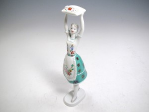 ホロハーザのクッションを頭上に掲げる少女を象ったフィギュリン。まるでミュージカルのワンシーンのような躍動感のあるポーズです。スカート裏に窯キズがありましたがその他は状態の良いお品物でした。