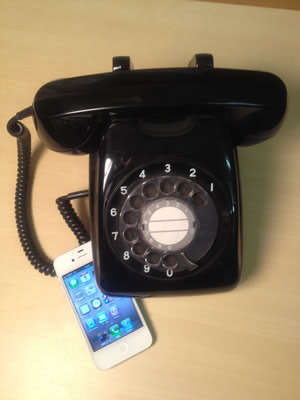 できることなら、小型の黒電話型携帯でズルズルと音をさせながら、ダイヤルを回したいものだ。もちろん電池不要、3分10円で・・・・・・。